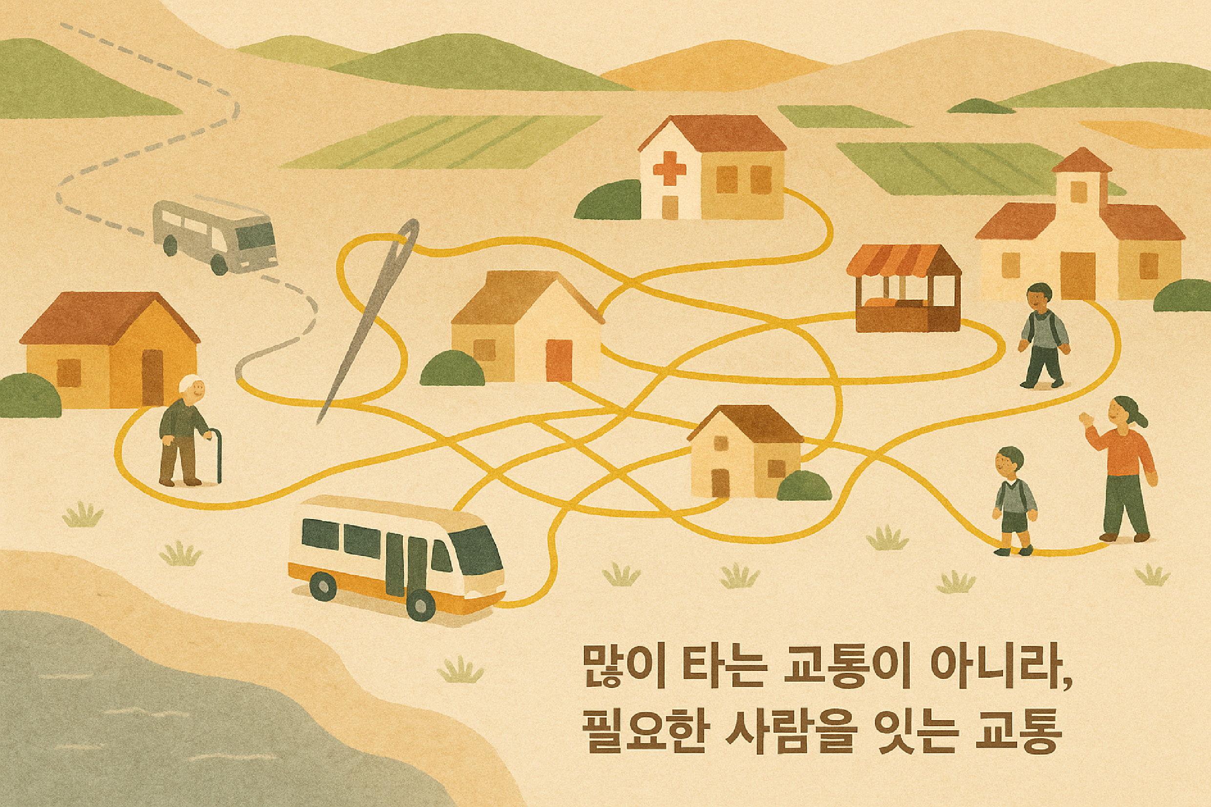 한국도 이제는 현실에 맞는 지방의 교통 개념을 새롭게 정리하고, 이를 토대로 실질적인 해결책을 세워야 한다. 지방의 교통 서비스는 이미 심각한 위기를 겪고 있다. 군 단위 지역의 재정은 매우 열악하며, 농어촌 지역 버스는 하루에 겨우 한두 번 운행할 정도로 서비스가 부족하다. 이런 상황 때문에 승용차에 비해 교통 이용 시간이 훨씬 길어지고 있다.(임서현·강찬모, 2023 / 임서현·홍성진, 2019) 정부는 이를 개선하기 위해 농촌형 교통모델을 운영하고 있지만, 대부분이 병원 방문과 같은 제한적인 목적에 그쳐 일상생활이나 경제활동을 제대로 지원하지 못하고 있다.(농림축산식품부, 2025)