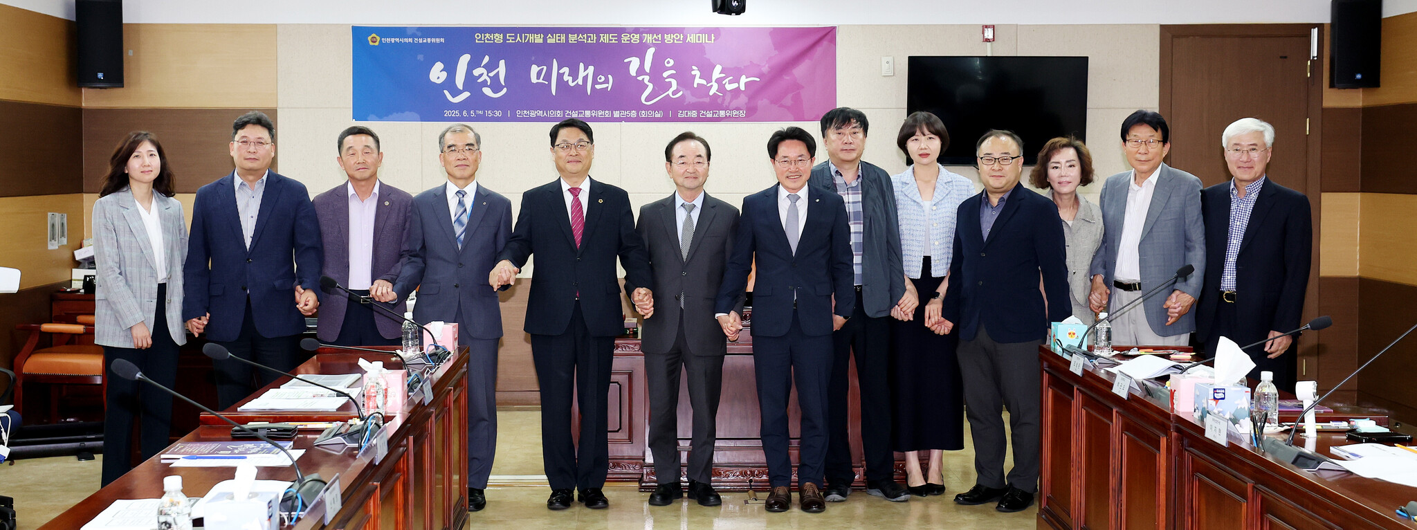 2025년 6월 6일 1차 세미나에 이어 10월 30일 두 번째 세미나를 ‘인천 미래의 길을 찾다-인천형 도시개발 실태 분석과 제도 운영 개선 방안’을 주제로 인천광역시의회 건설교통위원회 회의실에서 개최했습니다.